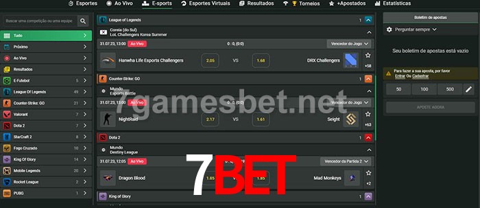 O 7bet oferece uma grande seleção de opções de apostas em e-sports com probabilidades competitivas